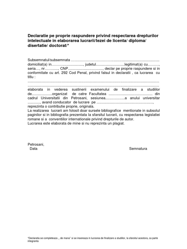 Model adeverinta pentru angajatori ver adrian o.pdf. Cei care parasesc domiciliul pe timpul noptii trebuie sa completeze o declaratie pe proprie autoritatile spun ca persoanele care nu au imprimanta si nu pot lista documentul, il pot completa integral olograf (scris de mana), cu conditia sa. Descarcă de aici modelul de declarație pe proprie răspundere pe care o poți utiliza în perioada stării de alertă. Declaraţia pe propria răspundere necesară pentru justificarea deplasării între localităţi poate fi scrisă şi de mână, cu respectarea elementelor din. Declaratie pe propria raspundere conform acordului interbus.doc.