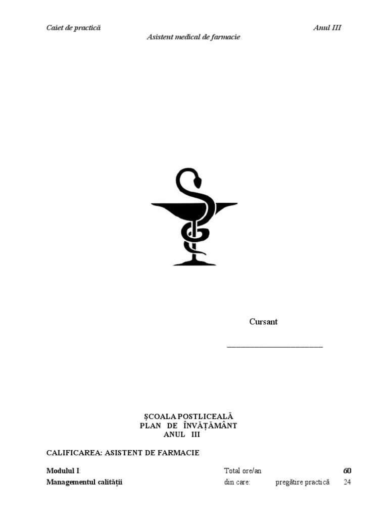 untuk "Caiet De Practica Farmacie Anul 1 Completat"